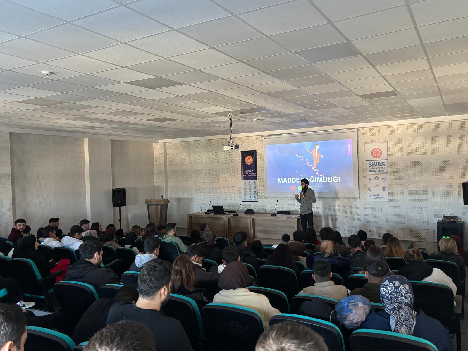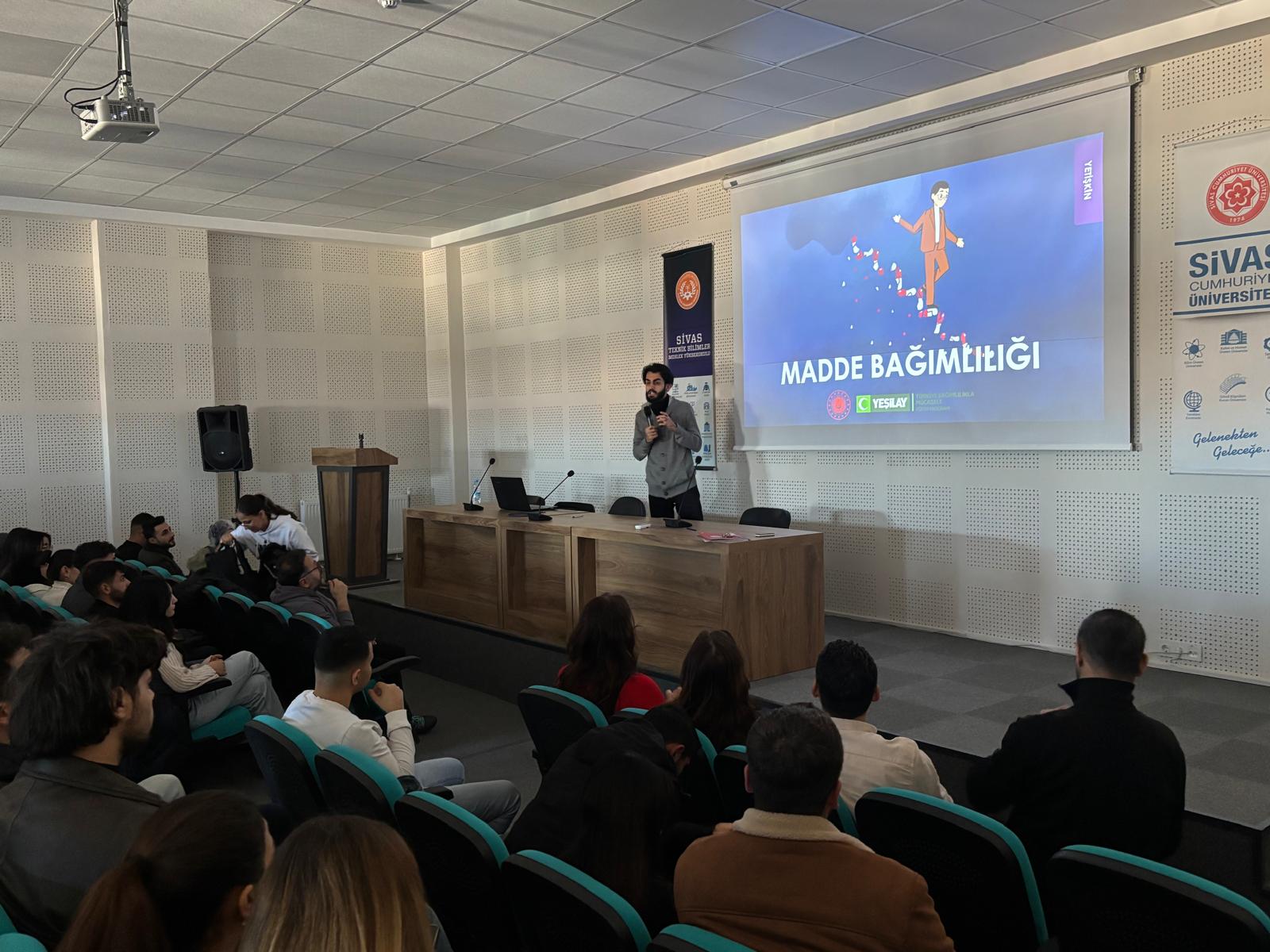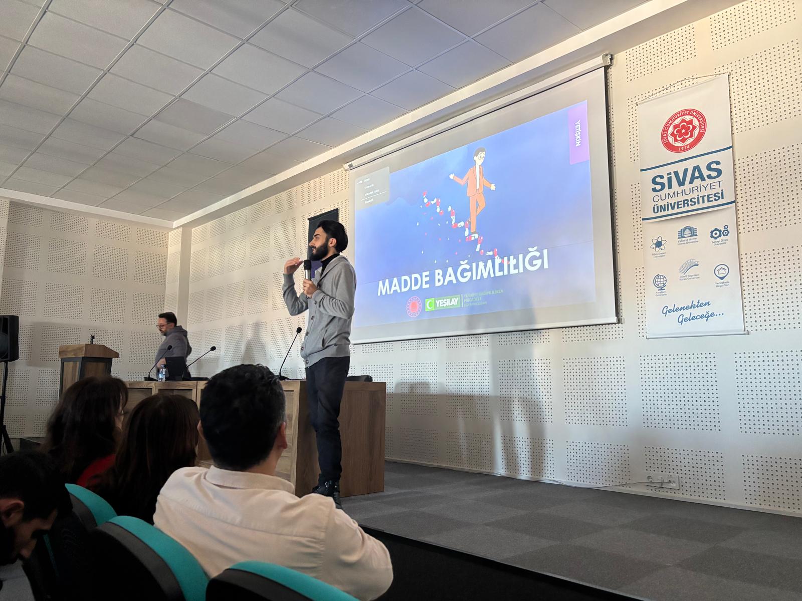Cumhuriyet Üniversitesi Teknik Bilimler Meslek Yüksekolulu ve Genç Yeşilay Kulübü işbirliği ile düzenlenen Türkiye Bağımlılıkla Mücadele Programı (TBM) kapsamında Uygulayıcı Akran Eğitimi düzenlenmiştir. Bu kapsamda Yeşilay Akran Eğitimcisi Enes Mert HALAÇ Yüksekokul öğrencilerimize Madde ve Teknoloji Bağımlılığı eğitimi vermiştir. Tüm katılımcılara teşekkür ederiz.