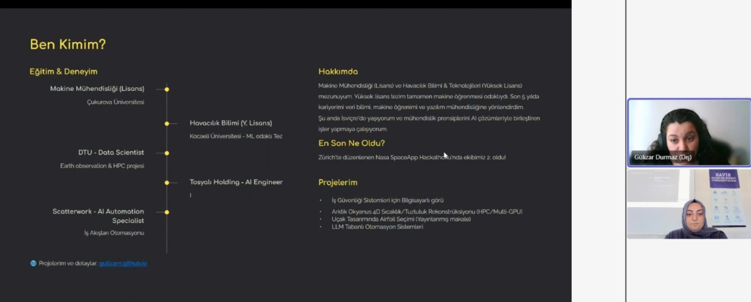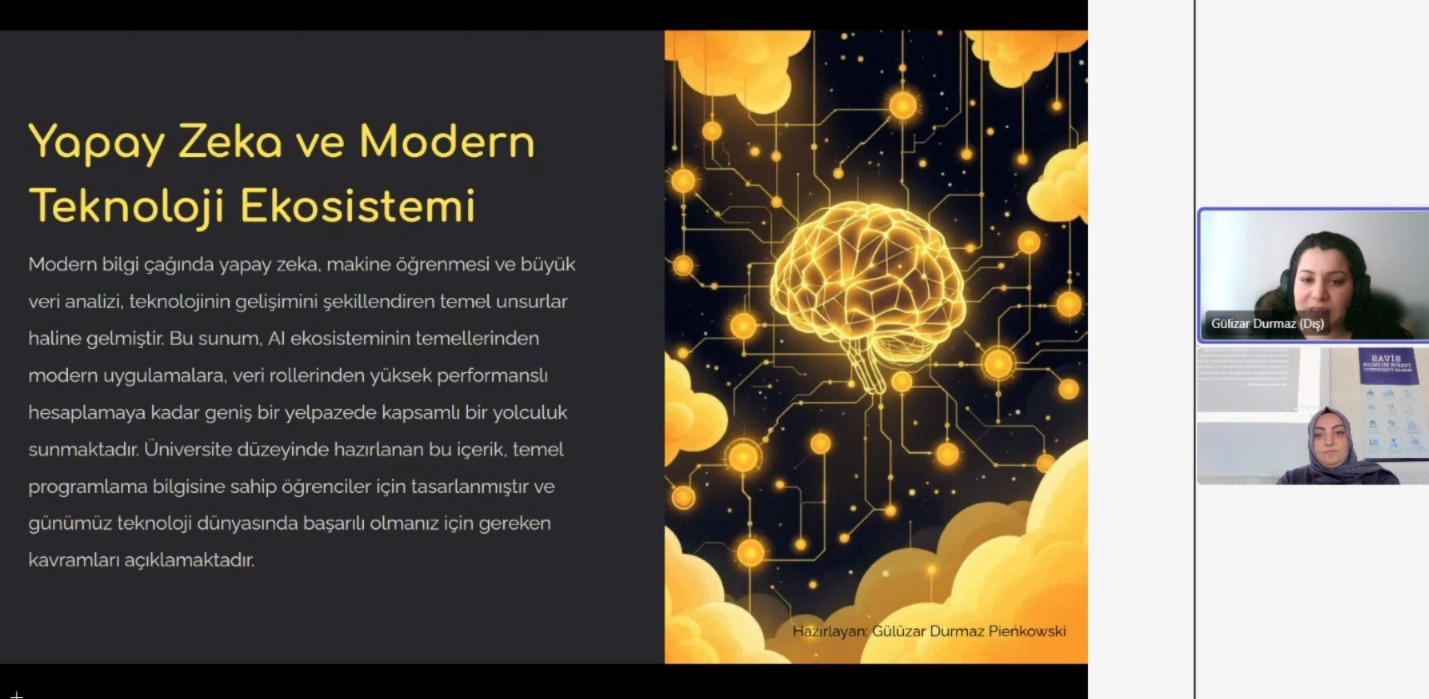 Sektör temsilcisi Gülüzar Durmaz Pieñkowski, Öğretim Görevlisi Merve Korkmaz’ın katkılarıyla Zürih’ten çevrim içi olarak Sivas Teknik Bilimler Meslek Yüksekokulu Büyük Veri Analistiği Programı öğrencileriyle bir araya geldi.