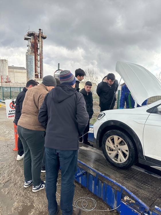 Yüksekokulumuz Motorlu Araçlar ve Ulaştırma Teknolojileri, Otomotiv Teknolojisi Programı 1. Sınıf öğrencileri TÜVTÜRK Araç Muayene İstasyonu’na teknik ziyaret gerçekleştirmişlerdir. Egzoz emisyon ölçümleri, taşıt fren sistemi, teknik donanımlar, far ayarı, emniyet ekipmanları ve standartlara uyumluluk açısından yapılan kontrollerin uygulamalı bir eğitimi yapılmıştır.