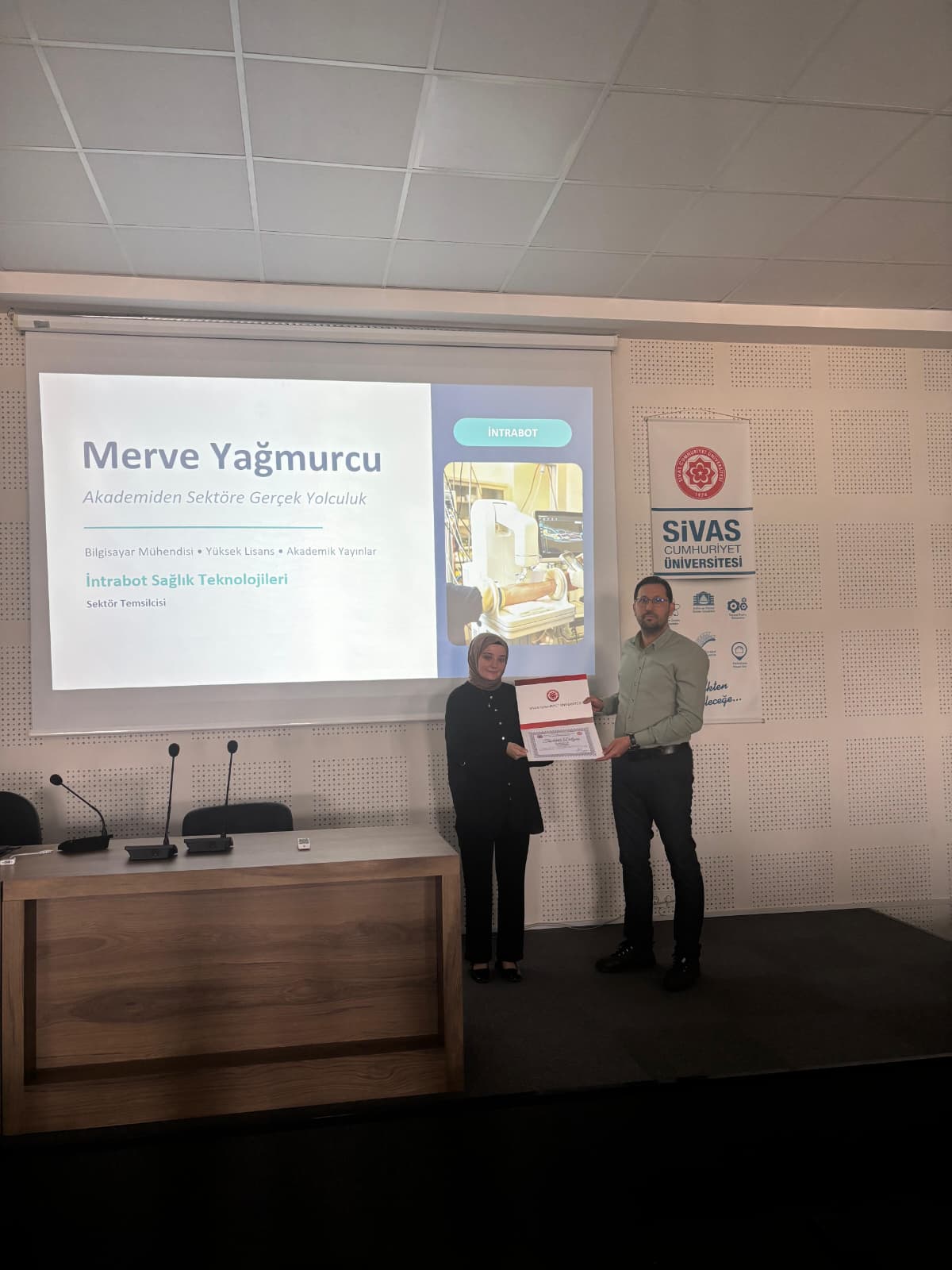 Etkinlikte "Büyük Veri ve Sağlıkta Yapay Zeka" konuları üzerine bilgi ve tecrübelerini aktaran Sayın Yağmurcu, sektördeki güncel gelişmeler hakkında öğrencilerimize değerli bilgiler sundu. Kıymetli vaktini ayırarak sunumuyla öğrencilerimize katkıda bulunan Sayın Merve Yağmurcu'ya teşekkür ederiz.